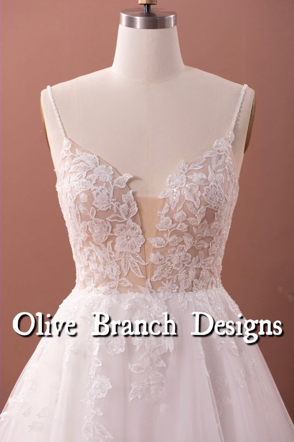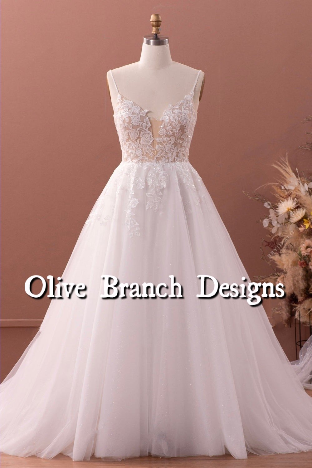 A-line Lace Tulle Spaghetti Straps Wedding Dress