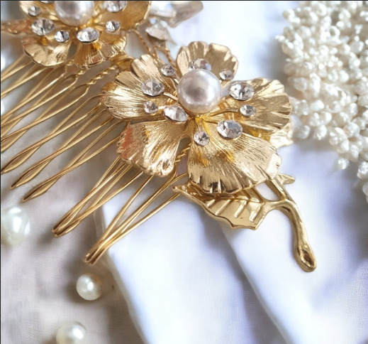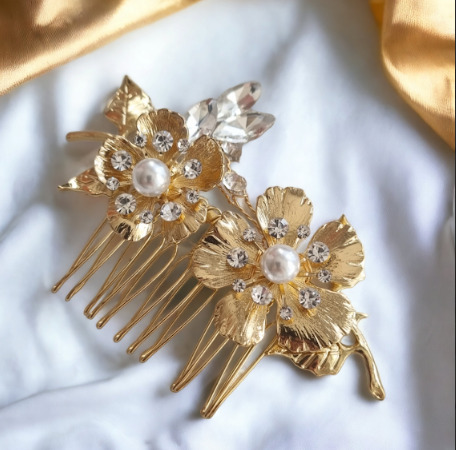 • Sale! Bridal Gold Flower Decor Hair Comb