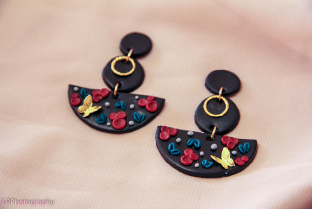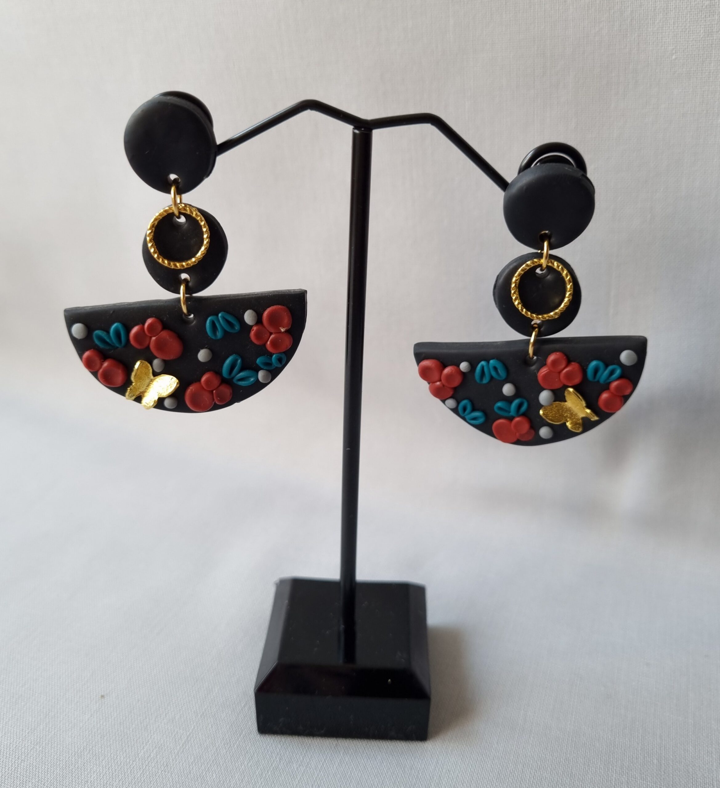 • Sale! Bridal White Half Moon and roses Dangle Earrings