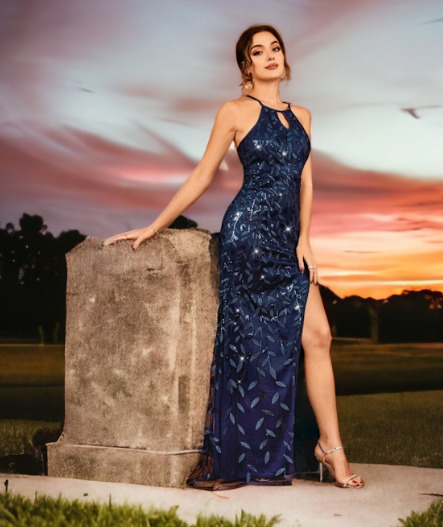 Criss Cross Backless Split Formal Dress