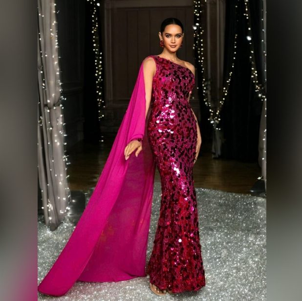 Glittery One Shoulder Sequins Formal Dress