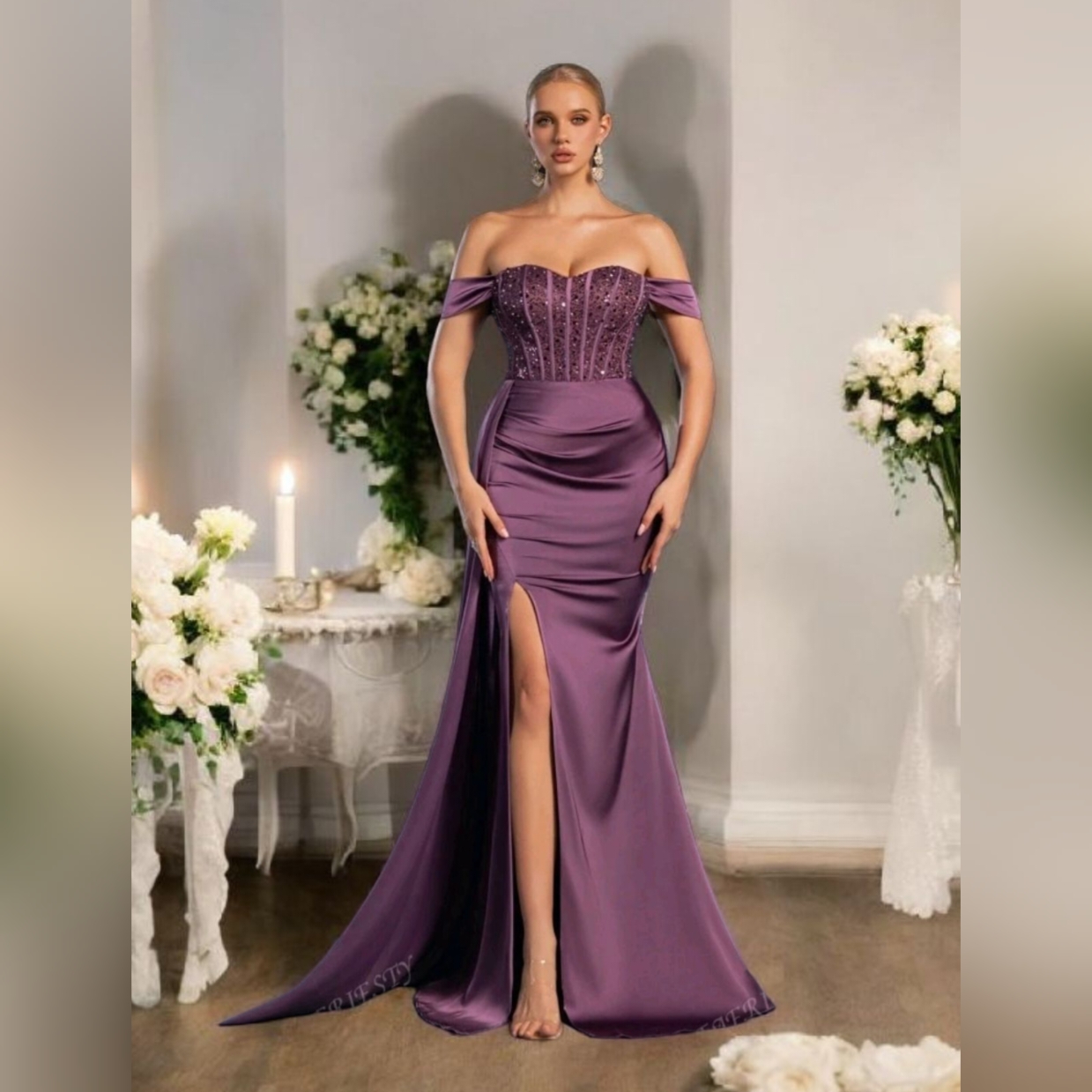 Off-Shoulder Formal Dress With Side High-Slit
