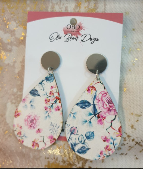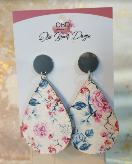 Silver Floral Leather Earrings